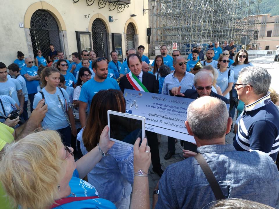 La Banda di Rapallo in trasferta a Norcia: consegnato assegno ai terremotati