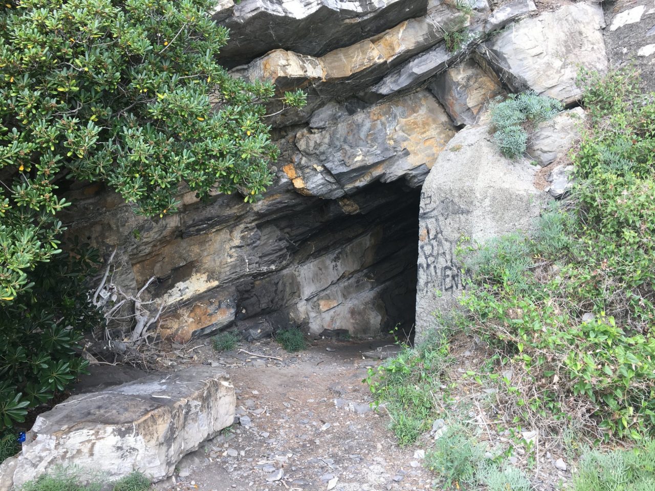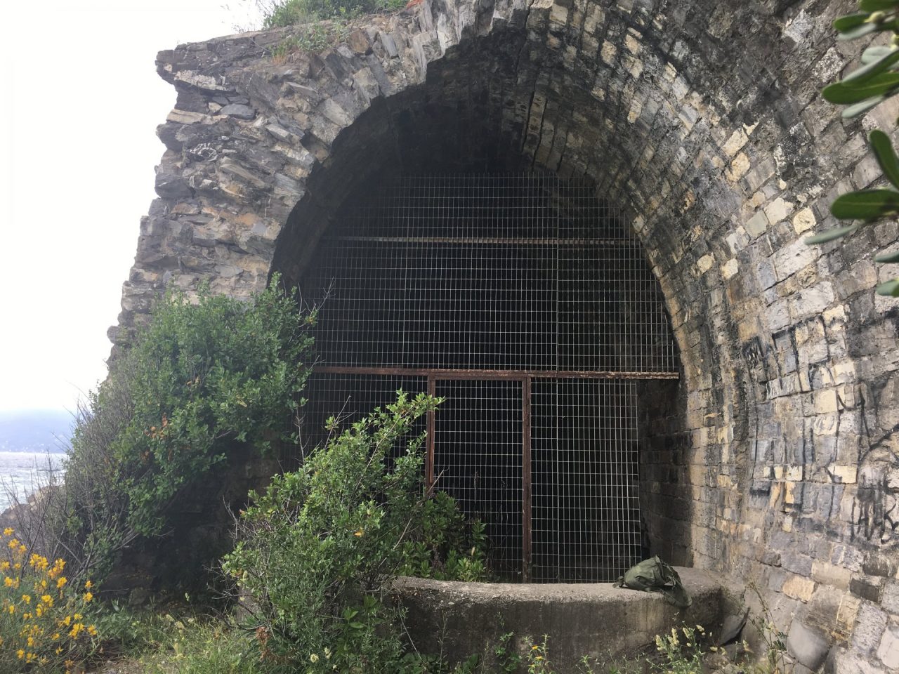 Poi ci siamo recati in un bunker proprio in linea d’aria sotto al santuario delle Grazie, chiesa a quanto pare occupata in tempo di guerra dai tedeschi: un corridoio scavato nel monte che porta a due grosse stanze, due grotte artificiali; numerosi i segni di scavi e crolli. Sotto al Santuario c’è tutto un complesso di tunnel interessanti».