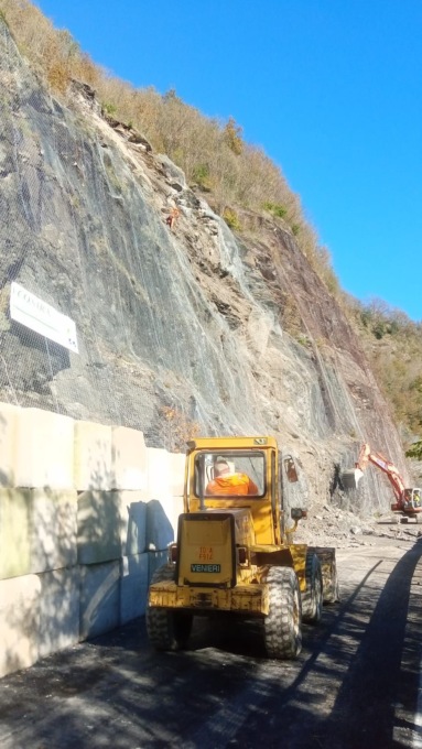 I lavori sono andati avanti quasi senza sosta negli ultimi giorni e hanno visto la posa della rete paramassi e l’utilizzo dell’esplosivo nella giornata di martedì. Si procede in queste ore alla posa dei blocchi di cemento per mettere in sicurezza la strada ma la riapertura non dovrebbe subire ritardi.