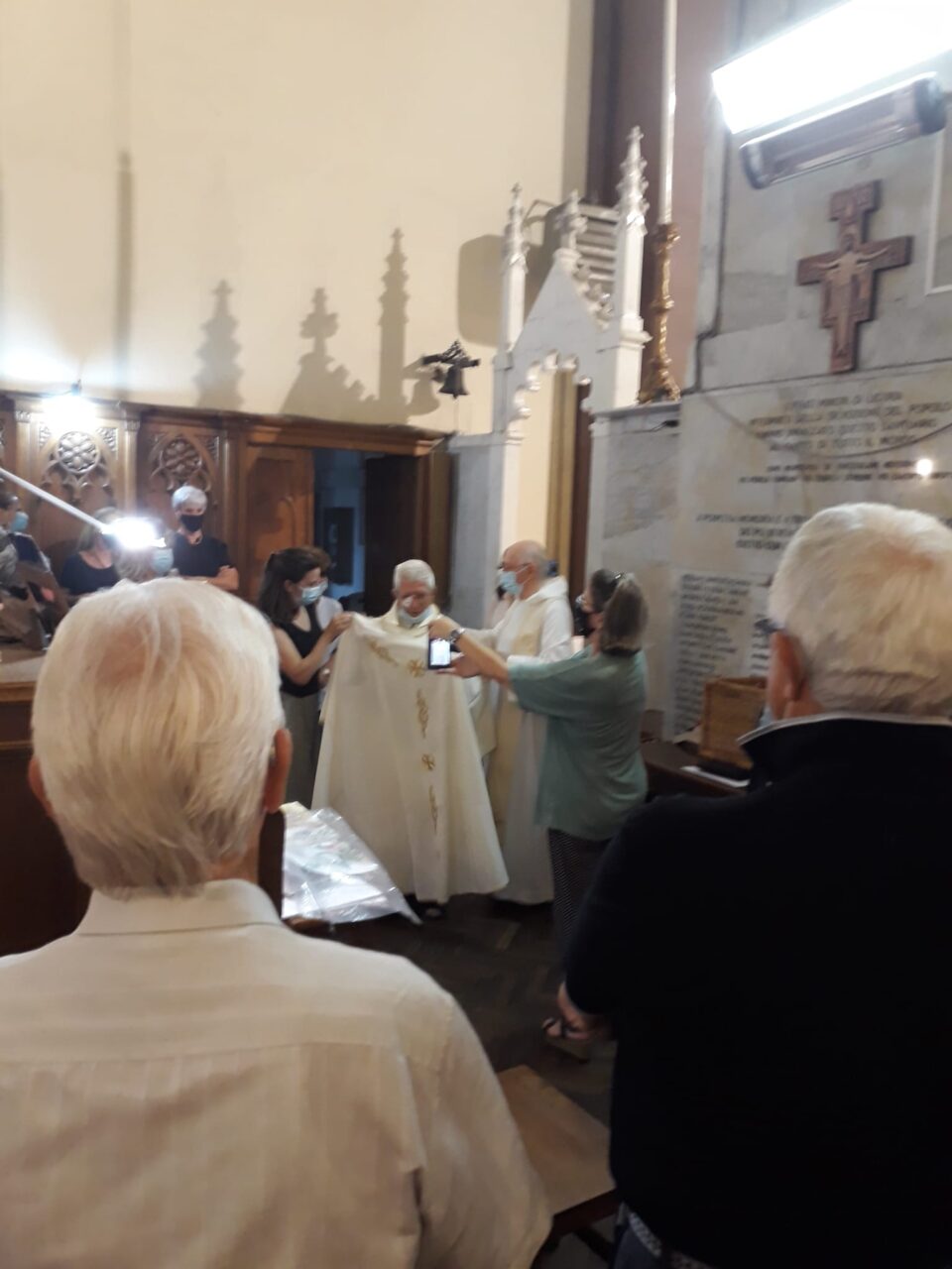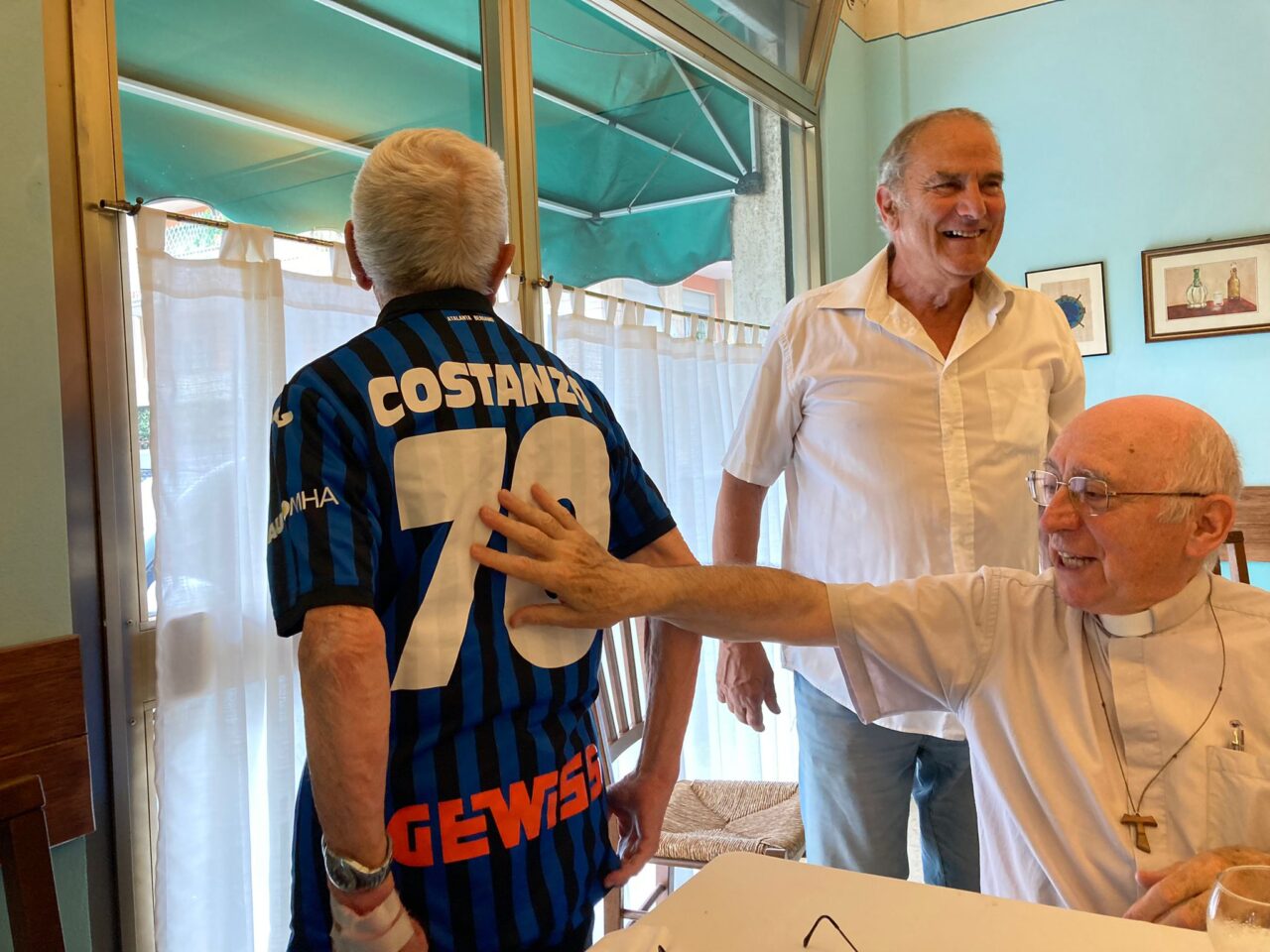 Per permettere anche ai tanti chiavaresi che lo conoscono e stimano di festeggiarlo, è stata celebrata domenica 4 luglio alle 11 nel Santuario di Sant’Antonio una solenne liturgia animata dal Coro Antoniano; al termine, un’occasione conviviale e il regalo di due abiti apparentemente antitetici ma che ben riassumono la vita e le passioni di padre Costanzo: una casula liturgica di colore bianco e la maglia neroazzurra dell’Atalanta, squadra di cui, da buon bergamasco, è tifosissimo, con il suo nome sulle spalle. Segno di passioni che non si spengono, nemmeno dopo tanti anni. Ad multos annos!
