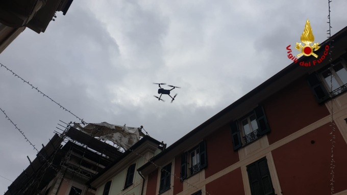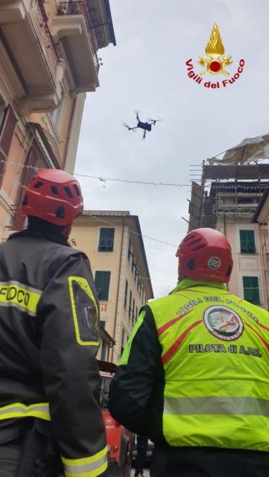 Per fornire una più ampia e completa possibile panoramica dei luoghi colpiti, attualmente inaccessibili da operatori, il nucleo SAPR (Sistemi Aeromobili Pilotaggio Remoto) dei Vigili del Fuoco, sta effettuando le riprese foto/video che saranno utili a rilevare informazioni di formazione e sviluppo dell’incendio.