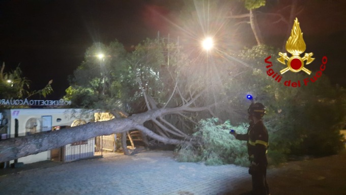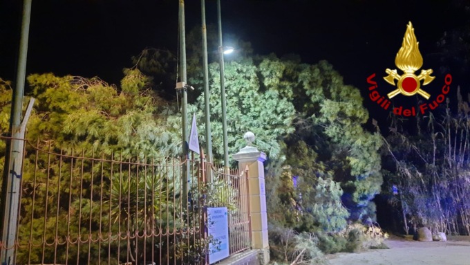 La caduta, oltre a ostruire completamente il passaggio e procurando danni al cancello, ha anche colpito la garitta del custode che, fortunatamente, è rimasto illeso.