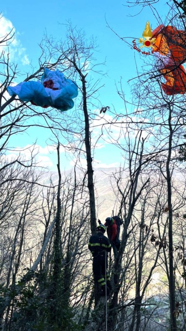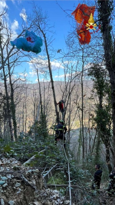 Precipita con il parapendio nei boschi di Vallefredda