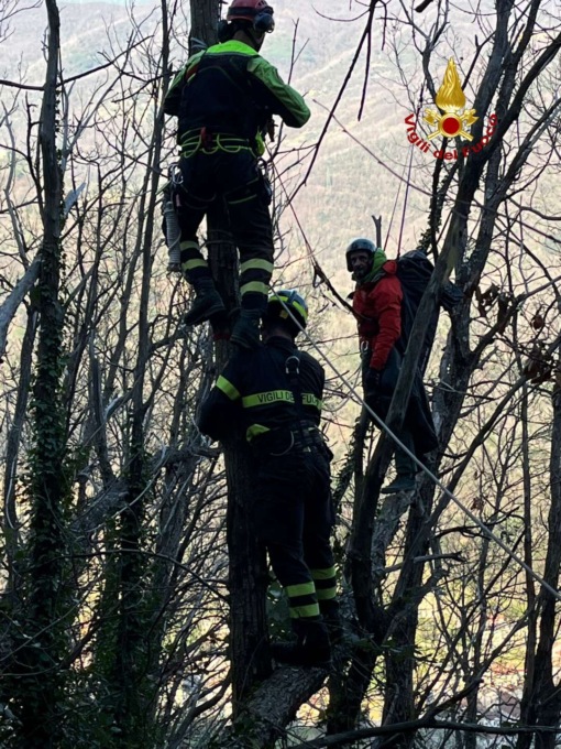 La squadra si è recata sul posto portando con sé corde e motoseghe. Nel frattempo, via cielo, è giunto l’elicottero Drago con il personale elisoccorritore che è stato verriccellato a terra ed ha collaborato alla manovra per calare l’uomo. Fortunatamente la brutta avventura ha avuto un lieto fine, in quanto è risultato illeso.
