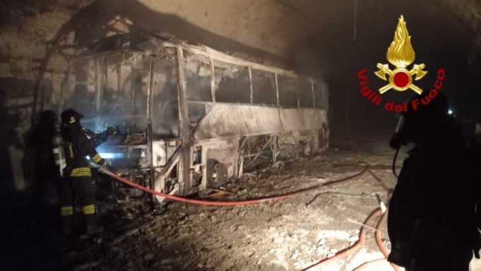 “La volta del tunnel ha riportato danni da calore e, allo stato attuale, non è possibile consentirne l’uso comunque vincolato alla rimozione della carcassa del pullman”, fanno sapere i vigili del fuoco.