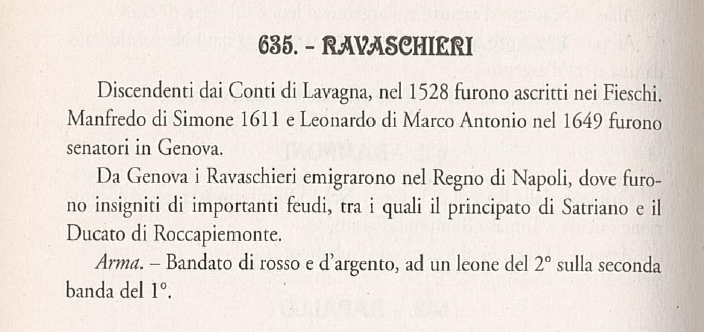 E’ lo stesso Dotti, Segretario della Società Economica, a raccontare del ritrovamento e a spiegare di cosa si tratti: “Riassettando un angusto locale, attiguo ad un residuo di scala medioevale dell’antico palazzo accanto a San Giobatta, anticamente dei Ravaschieri come gli edifici vicini (venduto, nel 1820, dal marchese Torriglia all’Economica) mi sono imbattuto in un bell’elemento litico, che ha subito attirato la mia attenzione. Il reperto, di grande interesse storico, è una lunga lastra in nera pietra di Promontorio, reimpiegata a pavimentare il vano di una finestra. Forse nata, molti secoli fa, come frontone decorativo di un camino, porta scolpito uno splendido blasone dei Ravaschieri e la scritta EX COMITIBUS LAV. (ANIÆ). La famiglia Ravaschieri, infatti, una delle più antiche di Chiavari, trae le sue origini da Beltramo dei Conti di Lavagna, ex comitibus Lavaniæ, investito da Federico Barbarossa nel 1158. Nel 1166 i membri della famiglia giurarono fedeltà al Comune di Genova fissando il loro habitaculum, la residenza familiare, nella Chiavari ai piedi del castello completato nel 1167: nel 1178 un lodo consolare avviò l’urbanizzazione del borgo. Tra il 1181 e il 1182 nacque il suo edificio religioso, il San Giovanni Battista voluto da Bardo di Lavagna: accanto alla chiesa, almeno dal Duecento, sorsero i palazzi civili di Ravaschieri e Fieschi, con caratteristiche architettoniche innovative. In un atto del 1205 troviamo nominato Gerardo Ravaschiero quale capostipite del casato in Chiavari: se il suo discendente Tomaso fu, nel 1380, il primo Capitano della Città, nei secoli molti personaggi diedero lustro alla casata. Fu sul finire del XII sec. che cominciarono a distinguersi le diverse linee familiari originate dal ceppo dei Conti di Lavagna: Fieschi, Ravaschieri, Scorza, Penelli, Bianchi, Cogorno, ognuna delle quali esercitava la propria influenza su una determinata porzione di territorio, supportata dal consorzio familiare. I Ravaschieri controllavano la Valle Sturla dove, alla fine del Duecento, avviarono la costruzione del borgo di Borzonasca. I blasoni di vari rami familiari presentavano analogie: quello dei Fieschi era bandato d’azzurro e d’argento, quello di Guirardo “lo Scorza” (figlio di Pagano Fieschi quondam Oberto) era bandato di rosso e d’argento così come quello dei Ravaschieri, che aveva in più un leone d’argento sulla 2ª banda rossa, proprio come appare evidente sulla pietra scolpita ritrovata”.