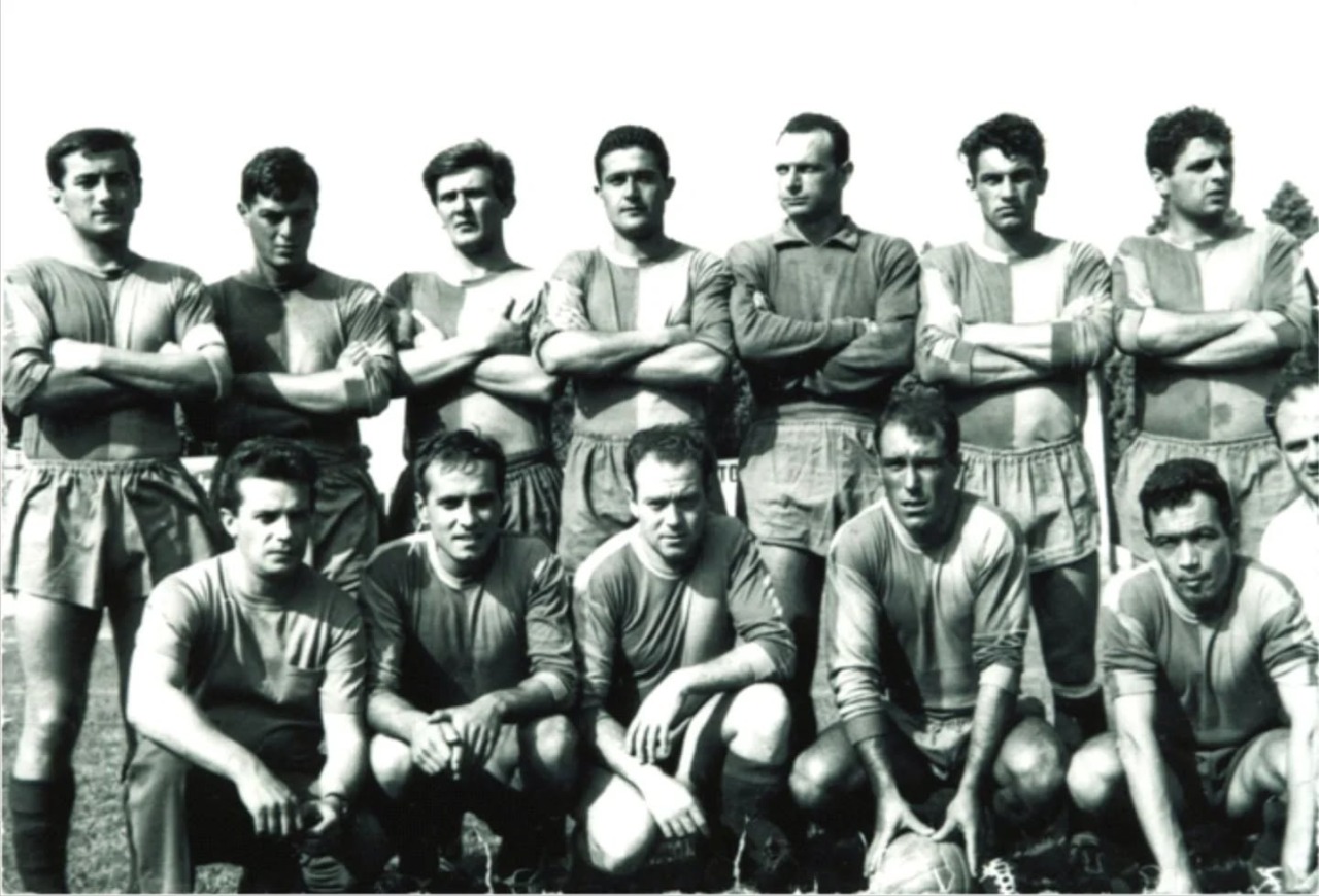 Nella foto Giorgio è il secondo da sinistra accosciato, spareggio a Lucca contro il Piombino del 1964: