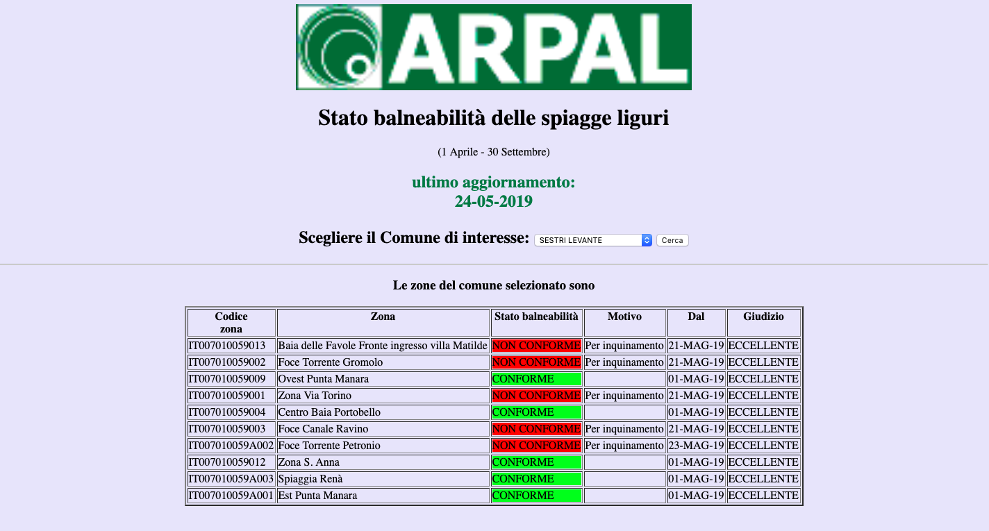 Arpal ha comunicato gli ultimi risultati relativi ai prelevamenti del 20 maggio che portano ad un nuovo divieto di balneazione.