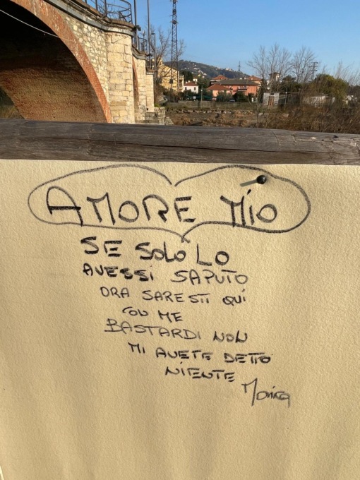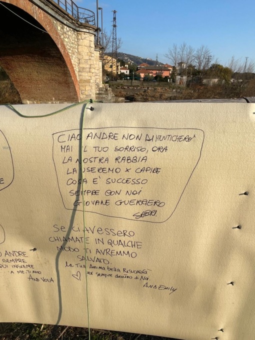 A colpire l’attenzione, in particolare, quelli affissi dalla mamma: “Andrea non doveva morire. NO“, scritto su un lenzuolo affisso sul ponte. E ancora, sul lungofiume: “Amore mio, se solo lo avessi saputo ora saresti qui con me. Bastardi, non avete detto niente”, sempre firmato da Monica Stagnaro, la mamma di Andrea. Disperazione, rabbia, ricerca di un perché. Un incidente sul quale si sta cercando di fare chiarezza, perché non si può morire a 14 anni in questo modo.