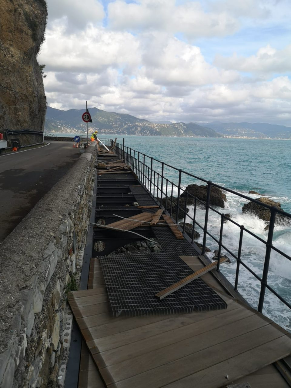 A causa della forte mareggiata che ha coinvolto il Tigullio tra il pomeriggio di venerdì 2 ottobre e la notte di sabato 3 ottobre, un piccolo tratto della strada provinciale 227, che congiunge Santa Margherita Ligure a Portofino, è stato interessato da uno smottamento al km 5+600, nella zona adiacente ad ovest della porzione di provinciale che è stata ricostruita dopo la mareggiata dell’ottobre 2018 ed inaugurata nell’aprile 2019.
