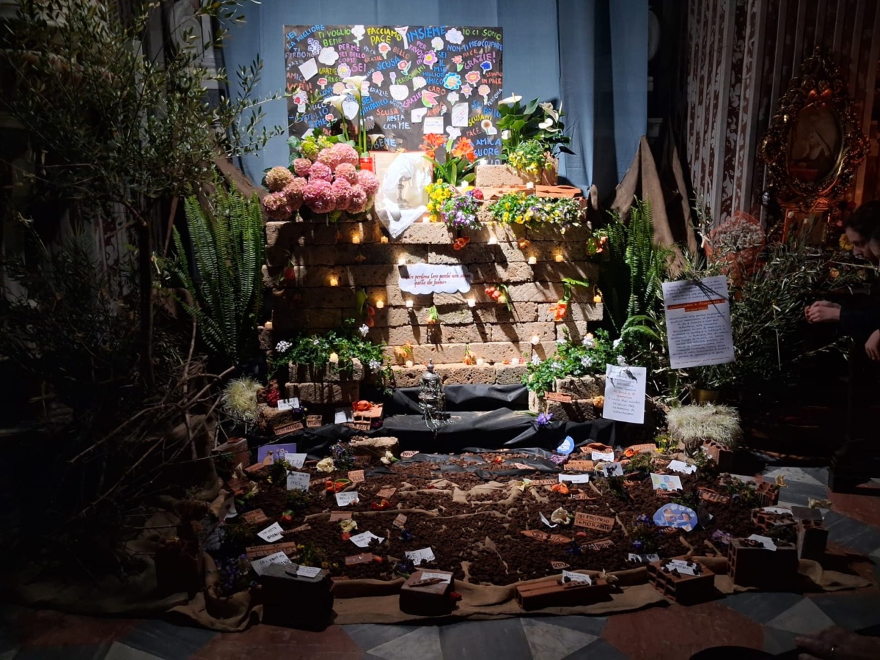 Gli altari vengono decorati con fiori bianchi, candele, tessuti preziosi e spesso con germogli di grano fatti crescere al buio, simbolo del passaggio dalle tenebre alla Resurrezione. In molte chiese l’allestimento assume anche forme scenografiche particolarmente evocative, rendendo ogni Sepolcro unico.