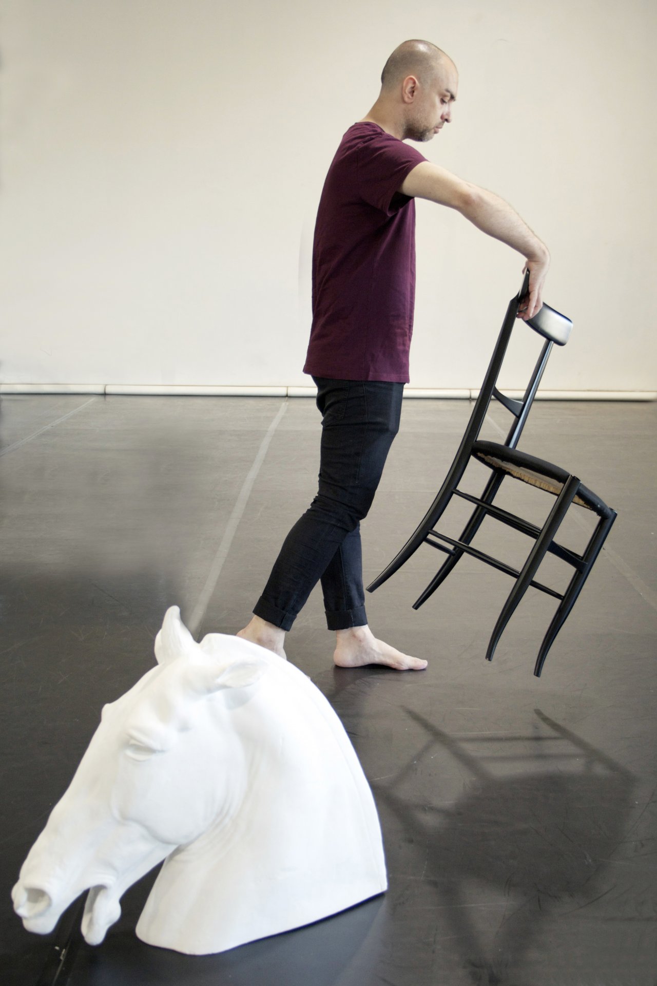 Crises, titolo preso in prestito dalla celebre creazione del 1960 di Merce Cunningham, porta in scena alcune opere di compositori che si sono costantemente misurati con l’innovazione e sperimentazione nell’avanguardia musicale, come Francesco Filidei e Simon Steen-Andersen, insieme a protagonisti di fasi storiche e contemporanee tra le più contraddittorie e rivoluzionarie della storia della musica moderna e dei giorni nostri, tra cui Helmut Lachenmann, Sylvano Bussotti e Mauricio Kagel. Crises vuole rappresentare il concetto della caduta, a cui si associa anche l’idea potente di rinascita. “Una testa bianca di cavallo si staglia sulla scena come se fosse sprofondata dentro il pavimento” – commenta Samantha Stella che ha firmato anche scena e costumi – “e dalla rottura di musica e vocabolario coreografico, una ballerina si muove a tempi sincopati su classiche scarpette da punta, sino a condurci idealmente ad un pallido Beethoven, forse un annuncio di antica e al contempo futura rinascita.”