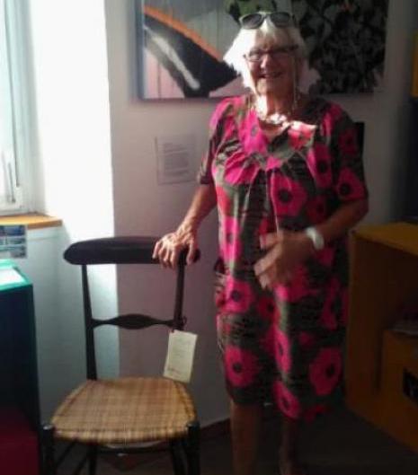 Così Rosmarie Hager vedova Colla, originaria della foresta Nera e nativa di Friburgo, un’infanzia vissuta a Weil am Rhein e dal 1965 residente a Chiavari, ha deciso di portare due oggetti a lei cari: una sedia, appunto, di Chiavari realizzata dal noto artigiano Adriano Podestà, e un paio di pattini a rotelle usati in gioventù.