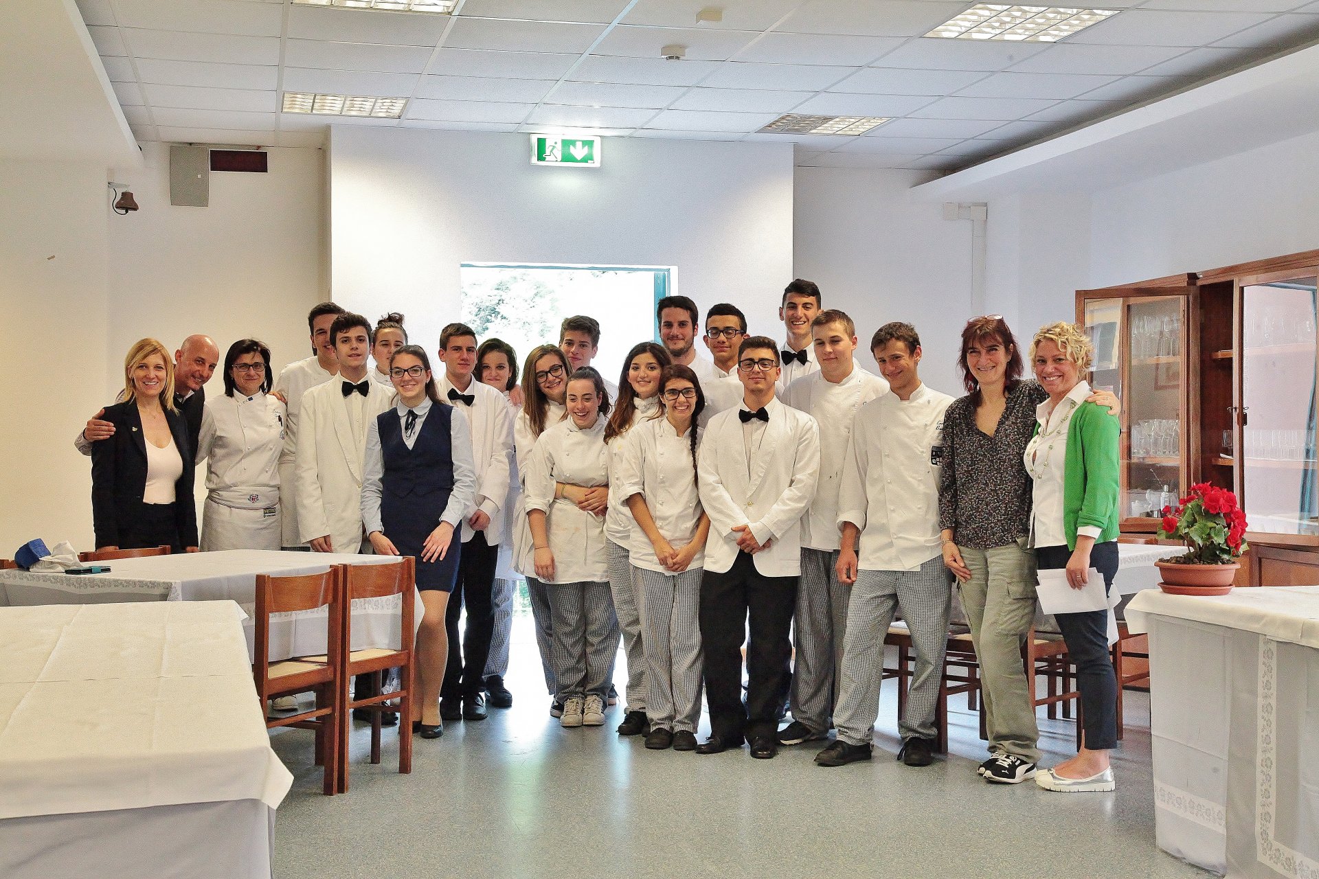 Da non dimenticare la bravura e la professionalità anche dei ragazzi di sala guidati dal prof. A. Soricelli e dalla prof.ssa C. Fortunato. Una chicca: con il dolce è stato servito un passito “Maccaia” da uve Scimiscia , vitigno autoctono della Fontanabuona prodotto da un’azienda agricola di Villa Oneto “U Cantin” Si ringraziano le insegnanti di cucina F.Fonnesu e C.Gamba per la professionalità e disponibilità e naturalmente il Preside A. Clavarino. E non ultimo il nostro fotografo ufficiale F. Masala”.