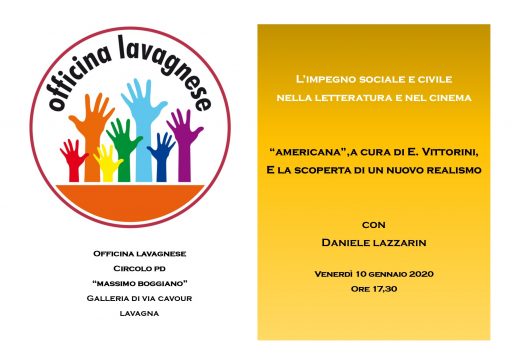 Officina Lavagnese informa che continua il percorso proposto per la cittadinanza Lavagnese e per tutto il Tigullio, promuovendo per il mese di gennaio due incontri su “L’impegno sociale e civile nella letteratura e nel cinema”.