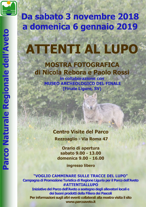 “La mostra, che aprirà i battenti sabato 3 novembre, nel “ponte” dei Santi, l’abbiamo chiamata “Attenti al lupo” (#AttentialLupo), richiamando la nota favola ma allo stesso tempo volendoci dimostrare, appunto, attenti, ossia concentrati e impegnati sugli aspetti legati alla presenza di questo animale, protetto dalle leggi, ma anche possibile fonte di conflitto con i nostri allevatori” spiega Michele Focacci, presidente del Parco dell’Aveto.