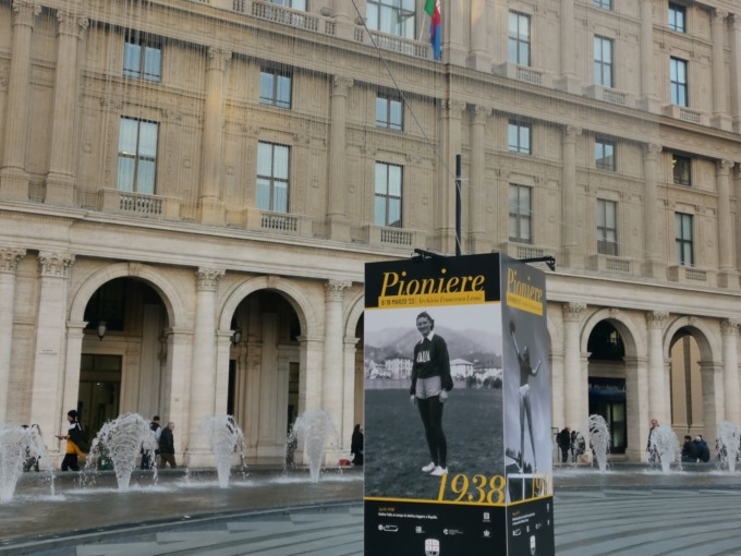 C’è tanto Levante ligure nella mostra a cielo aperto “Pioniere”, la mostra fotografica diffusa e a cielo aperto che rimarrà in esposizione fino al 19 marzo sui totem allestiti in piazza De Ferrari a Genova e davanti ai municipi di Savona, La Spezia e Imperia.