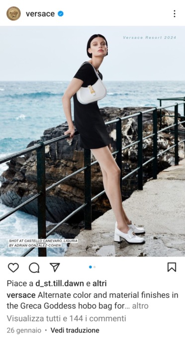 “La bellezza della nostra Zoagli è stata scelta dalla campagna pubblicitaria della nota maison Versace per accompagnare al meglio i loro prodotti di moda”: ad annunciarlo, presentando le immagini della campagna pubblicando le immagini di Instagram della nota casa di moda, il sindaco di Zoagli Fabio De Ponti. Le foto sono state scattate sul lungomare e sulla spiaggia del borgo.