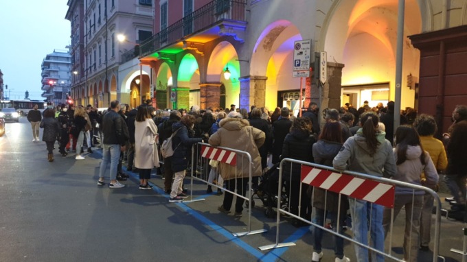 Una vera e propria folla si è assiepata in corso Garibaldi davanti al point della lista civica Avanti Chiavari, dove alcuni posto auto sono stati sgomberati per fare spazio ai tanti presenti.
