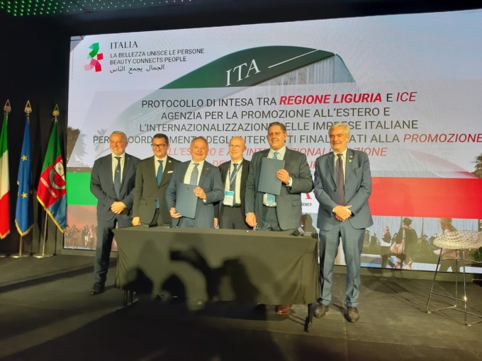 Un protocollo d’intesa tra Ice Agenzie e Regione Liguria per collaborare e portare più imprese sui mercati internazionali. Lo hanno firmato oggi presso il Paglione Italia di Expo Dubai, nell’ambito del Regional Day dedicato alla Liguria, il presidente della Regione Liguria Giovanni Toti e il presidente di Ice, Carlo Maria Ferro, alla presenza anche del presidente di Confindustria Nautica Saverio Cecchi e dell’assessore allo Sviluppo Economico Andrea Benveduti.