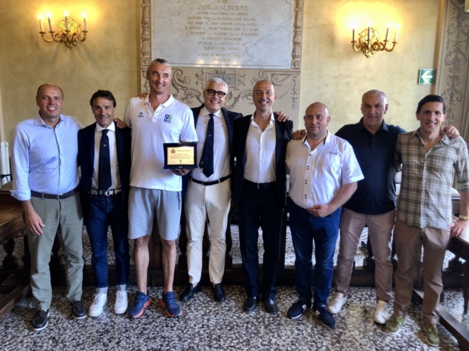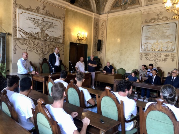 Il sindaco Federico Messuti, il presidente del consiglio Antonio Segalerba, l’assessore Gianluca Ratto e il consigliere Andrea Dagnino hanno consegnato una targa alla società rappresentata dal presidente Danilo Ghio, dal vicepresidente Claudio Zadra e dal direttore Stefano Giacometti, e una medaglia simbolica agli atleti e all’allenatore Robert Dinu.