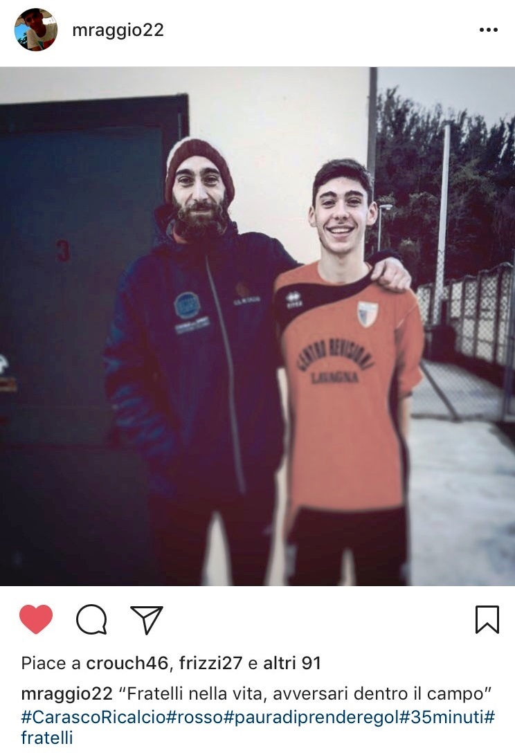 Simone Raggio è il portiere del Ri Calcio, classe 1986 ed ex portiere del Carasco, dove oggi gioca Marco classe 2000, trequartista: «La partita inizia bene, con belle azioni da entrambe le squadre e buone prestazioni da entrambi i fratelli, che si trovano qualche volta faccia a faccia nell’area di rigore del Ri – racconta Adelina Raggio -. Purtroppo però, la tensione sale e il Carasco si porta in vantaggio con una rete di Rosciglioni, poi di seguito annullata, che fa scatenare l’ira del fratello maggiore…». Al 35° minuto il derby in famiglia, si conclude anzitempo per le proteste del Raggio maggiore che viene espulso. Ma la partita di Marco continua, e anche grazie alla sua prestazione, porta a casa la vittoria della sua squadra. E come ogni derby che si rispetti, tra i fratelli, molto affiatati nella vita di tutti i giorni, non sono mancati i classici “sfottò”: «In questo caso, il fratello maggiore non è stato un esempio da seguire per il minore, come lo è stato per tutto il corso della sua vita – conclude Adelina -. Ma speriamo che nella partita di ritorno ci possa essere una redenzione da parte del fratello maggiore, e che entrambi, ci possano regalare qualche emozione in più».