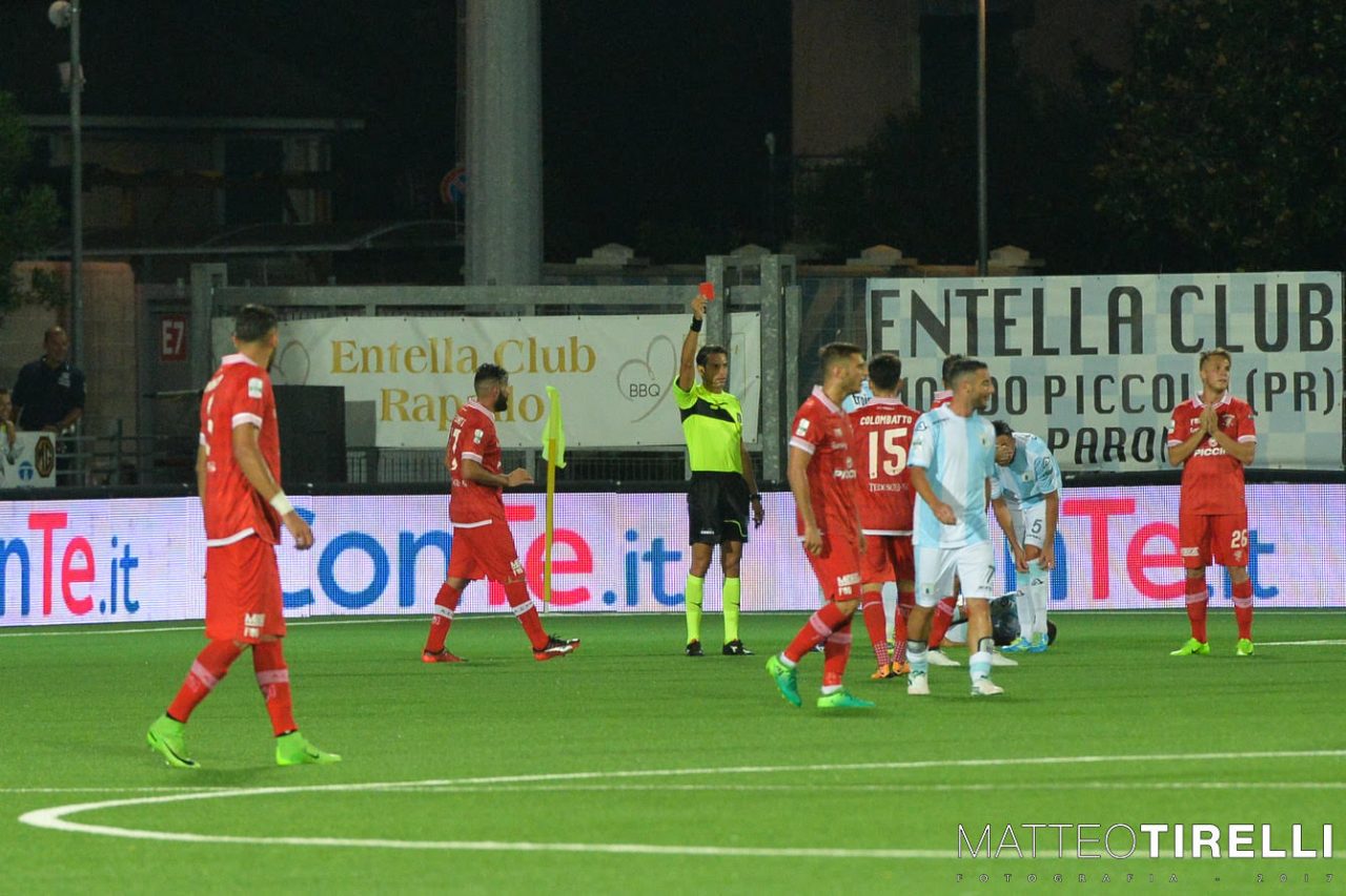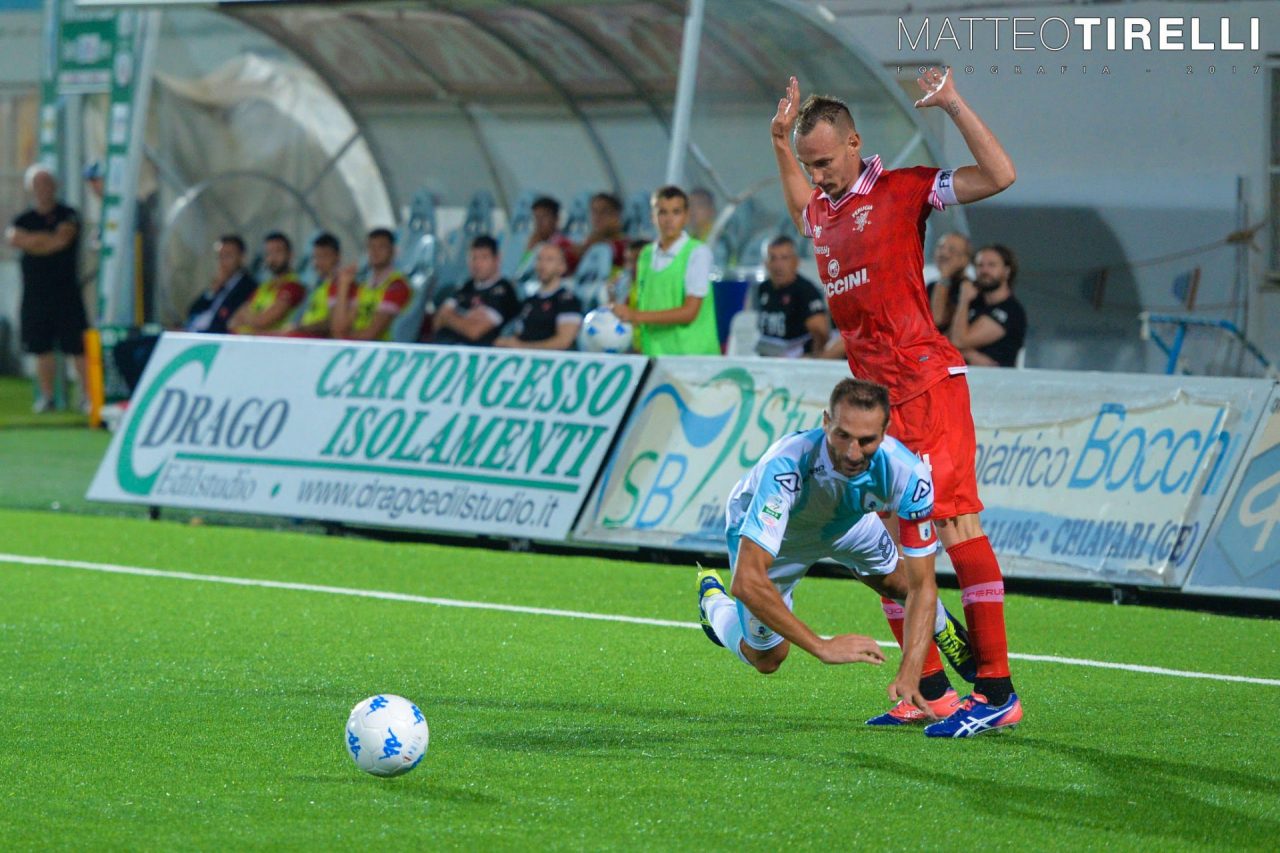 Una partenza tutta in salita per la squadra capitanata da Michele Troiano. «E’ stata una figuraccia da parte nostra», ha commentato subito dopo la partita il numero 8. Il Perugia dopo 13 minuti riesce a segnare due reti, prima Hann, poi Cerri su rigore. Poco dopo il capitano dell’Entella riapre la partita trasformando un rigore in rete, ma nei minuti successivi gli umbri mettono fine ai sogni dei chiavaresi con altri due gol. Han va a segno di nuovo seguito da Colombatto. Il primo tempo si chiude con il Perugia in vantaggio per 4 a 1. Al 16esimo del secondo tempo Brighi viene espulso, ma la superiorità numerica non riesce a tradursi in un vantaggio per l’Entella che, anzi, subisce un altro gol, l’autore è ancora lui, il nordcoreano Han.