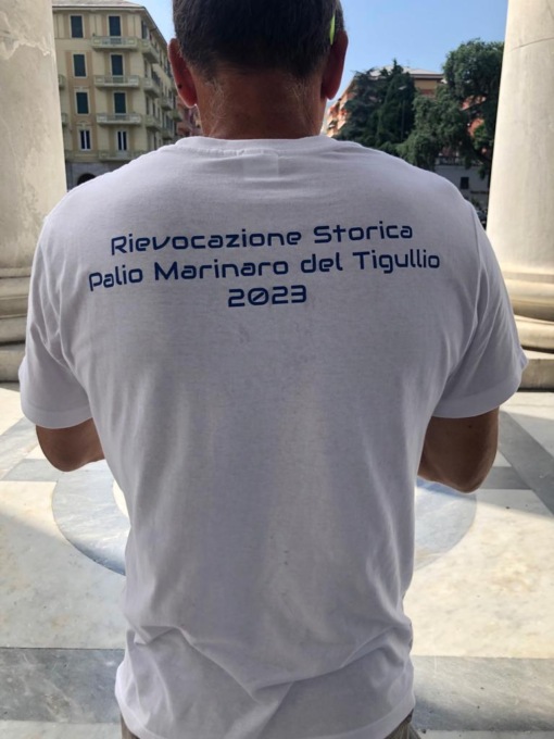 La presidente ha sfilato con la maglietta dell’area canottaggio dedicata al compianto sindaco, al corteo storico partito dal centro sino all’arenile: a sfilare, gli equipaggi del Palio (22) e il Gruppo Sbandieratori di Lavagna.