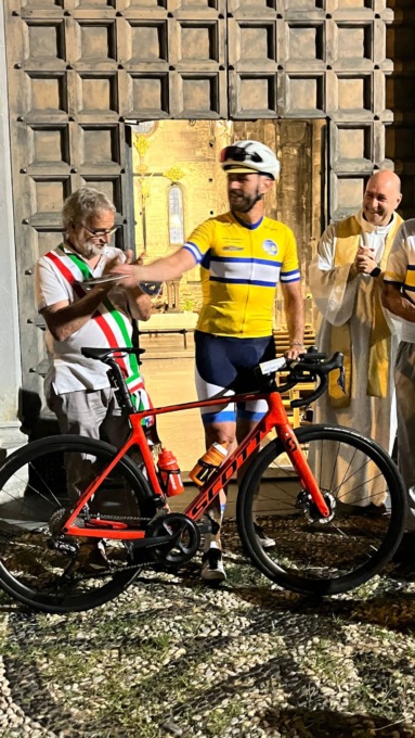 E’ un’impresa davvero per pochi: Simone Sabini, del team “A ruota libera”, è partito con la sua bici ieri sera venerdì 21 luglio dal sagrato della Basilica dei Fieschi per compiere, in un’unica tappa, i 497 chilometri che lo separano da piazza San Pietro a Roma, senza mai fermarsi.