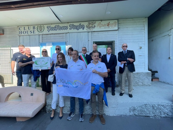 Un giorno speciale per il rugby ligure: il campo “Carlo Androne” di Recco è stato inaugurato oggi con una cerimonia che ha visto la partecipazione del sindaco Carlo Gandolfo, dell’assessore regionale allo sport Simona Ferro, del presidente della Pro Recco Rugby Roberto Libè e del presidente del Comitato regionale della Federazione Italiana Rugby della Liguria Enrico Mantovani, oltre che della delegazione Aces Europe che sta valutando la candidatura della Liguria a Regione europea dello sport 2025.