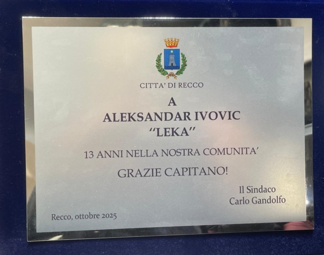 Prima della partita della Pro Recco che si è disputata alla “Sciorba” , martedì 28 ottobre, il sindaco di Recco Carlo Gandolfo ha consegnato un riconoscimento speciale ad Aleksandar “Leka” Ivović, storico capitano della squadra biancoceleste.