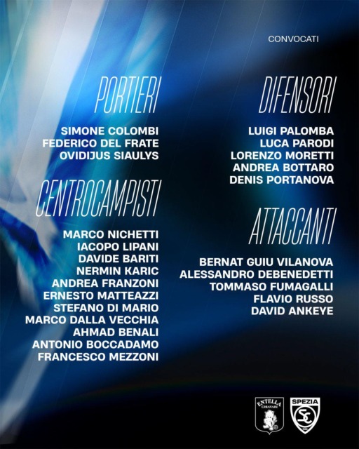 Si avvicina il fischio di inizio della partita di calcio tra Virtus Entella e Spezia, valida per la 15ª giornata del campionato di Serie B: l’appuntamento con questo atteso derby, infatti, è per oggi, lunedì 8 dicembre, alle 19:30, allo stadio Sannazzari di Chiavari.