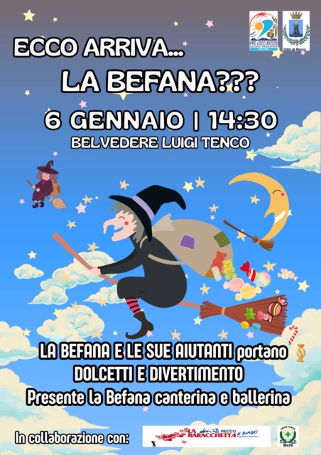 Martedì 6 gennaio, al Belvedere Luigi Tenco, alle 14.30, come da tradizione, la Pro Loco, con il patrocinio del Comune di Recco e la collaborazione della Baracchetta di Biagio, organizza l’evento “Ecco arriva la Befana”.