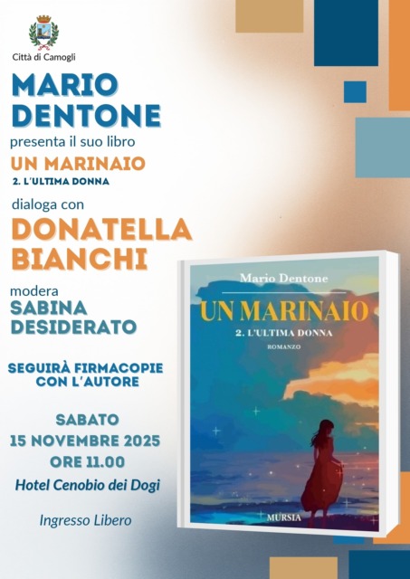 «Ancora una volta, con piena soddisfazione, l’amministrazione di Camogli accoglie Mario Dentone ed il secondo capitolo della sua Saga “Un marinaio. L’ultima donna” A distanza di circa due anni dalla presentazione, sempre al Cenobio dei Dogi, del primo capitolo “Un marinaio. La moglie del capitano”, l’autore e protagonista sulle pagine del Secolo XIX, ci permetterà di anticipare il tema del mare, che accompagnerà molte delle iniziative culturali della nostra città nel 2026, raccontandoci del suo protagonista Michele così legato a Camogli e così impregnato dei tratti tipici dell’identità della nostra gente di mare».