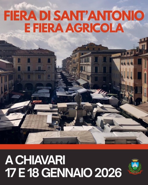 Sabato 17 e domenica 18 gennaio 2026 Chiavari ospiterà la tradizionale Fiera di Sant’Antonio e la Fiera Agricola, uno degli appuntamenti più attesi dell’anno.
