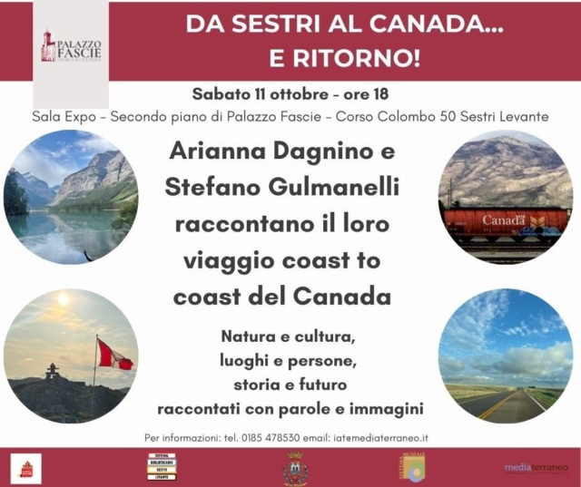 A Palazzo Fascie, sabato 11 ottobre la presentazione del reportage di viaggio “Da Sestri al Canada e ritorno” a cura di Arianna Dagnino e Stefano Gulmanelli.