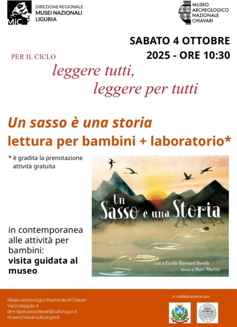 Sabato 4 ottobre alle 10.30 il Museo Archeologico Nazionale di Chiavari propone un appuntamento speciale dedicato alle famiglie.