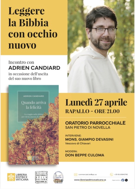Adrien Candiard, domenicano francese che vive a Il Cairo in Egitto, sarà a Rapallo c, per un incontro “Quando arriva la felicità”: il domenicano Candiard a Rapallo per un incontro pubblicopubblico sul tema del suo ultimo volume “Quando arriva la felicità. Un viaggio nella Bibbia per chi ha smesso di crederci” (Libreria Editrice Vaticana).