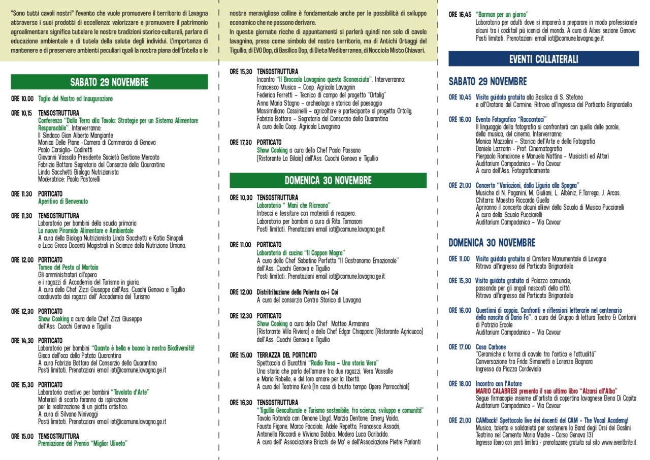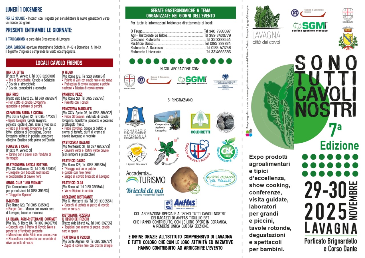 È partito il conto alla rovescia: Lavagna si prepara a due giorni interamente dedicati alle eccellenze agroalimentari locali con la settima edizione di “Sono Tutti Cavoli Nostri”, in programma sabato 29 e domenica 30 novembre 2025 tra Porticato Brignardello e corso Dante.