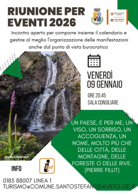 L’Amministrazione Comunale di Santo Stefano d’Aveto ha programmato una riunione aperta, per venerdì 9 gennaio, per iniziare a costruire insieme il calendario degli eventi 2026 e migliorare l’organizzazione delle manifestazioni, anche dal punto di vista burocratico.