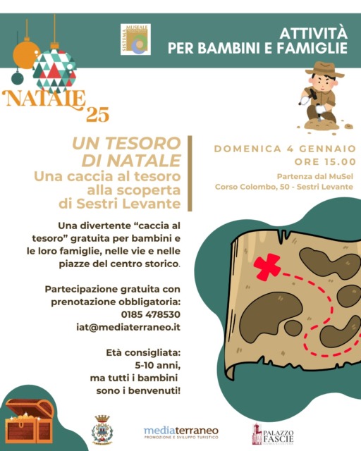 Domenica 4 gennaio 2026, a partire dalle 15, il centro storico di Sestri Levante si trasformerà in un grande gioco natalizio con l’iniziativa “Un tesoro di Natale”, una caccia al tesoro pensata per bambini e famiglie.