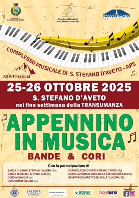 Nel fine settimana si svolgerà anche il XXVII Festival Appennino in Musica – Bande e Cori, con esibizioni e sfilate che porteranno nel borgo un’atmosfera di festa e di autentica condivisione, a partire dal concerto corale del sabato sera alle ore 21, presso il Santuario N.S. di Guadalupe.