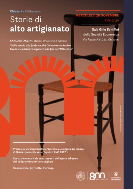 L’appuntamento è per mercoledì 26 novembre alle 17:30 in sala Ghio Schiffini della Società Economica di Chiavari, in via Ravaschieri 15, con “Storie di alto artigianato”.