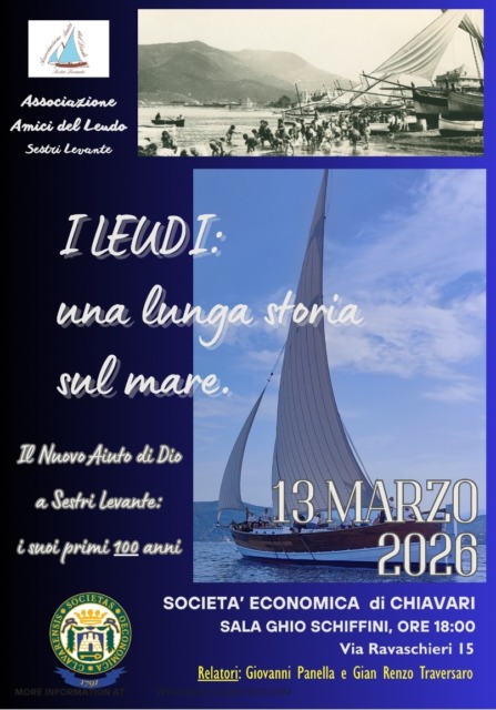 Appuntamento per venerdì 13 marzo, alle 18, in Sala Ghio Schiffini della Società Economica di Chiavari per l’evento organizzato dall’Associazione Amici del Leudo, che gode del patrocinio dell’Ente chiavarese.