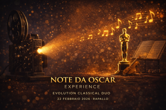 Domenica 22 febbraio alle 12 il Teatro Auditorium delle Clarisse di Rapallo ospiterà il Concerto Aperitivo “Note da Oscar Experience”, uno spettacolo per violino, violoncello, voce e immagini che trasforma le più amate colonne sonore del cinema in un’esperienza immersiva.
