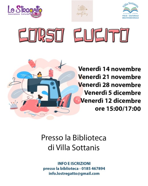Prende il via, a Villa Sottanis di Casarza Ligure, un corso base di cucito.