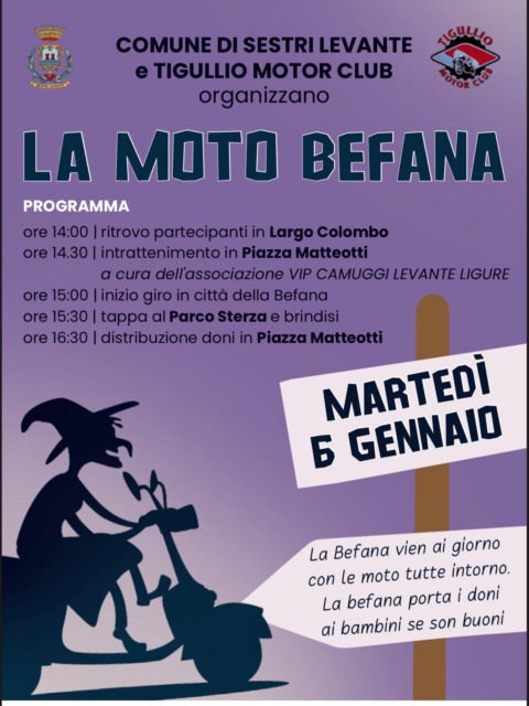 Torna la Motobefana a Sestri Levante: l’appuntamento è organizzato dal Comune e dal Tigullio Motor Club.